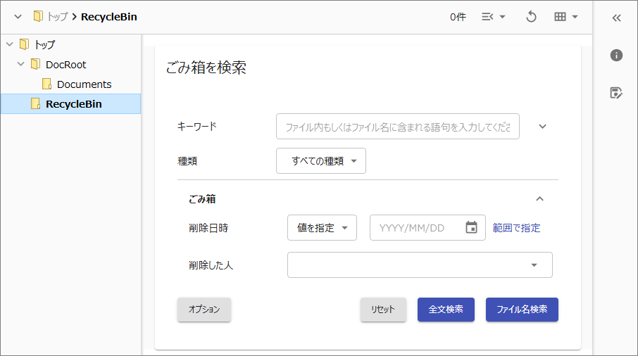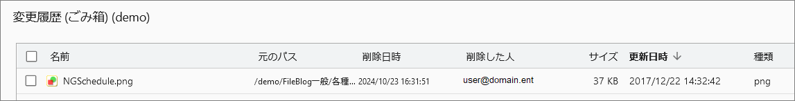 ごみ箱フォルダではログインユーザーにアクセス権限のあったファイルのみを探すことができます。