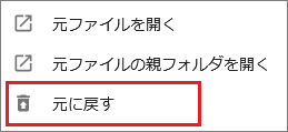 [変更履歴(ごみ箱)]で開いたダイアログにあるファイルを[右クリック > 元に戻す]を実行します。