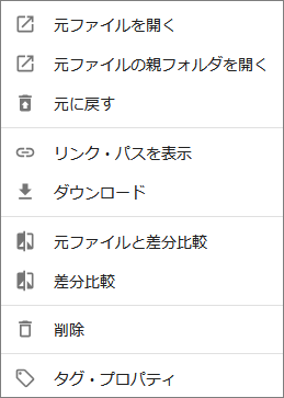 [変更履歴(ごみ箱)]メニューで開くダイアログで実行できる操作です。