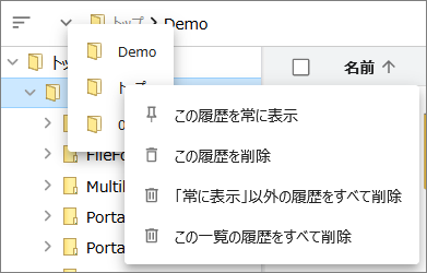 フォルダツリーのフォルダ名を選択するとそのフォルダに遷移します。