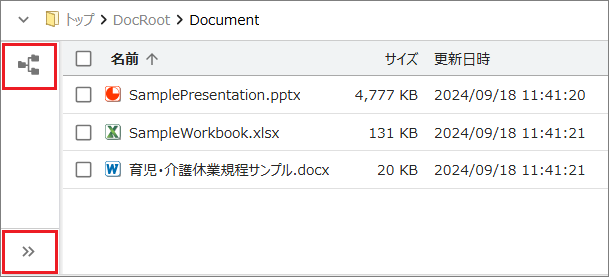 [フォルダアイコン]または[ >> ]を選択するとフォルダツリー領域が展開されます。