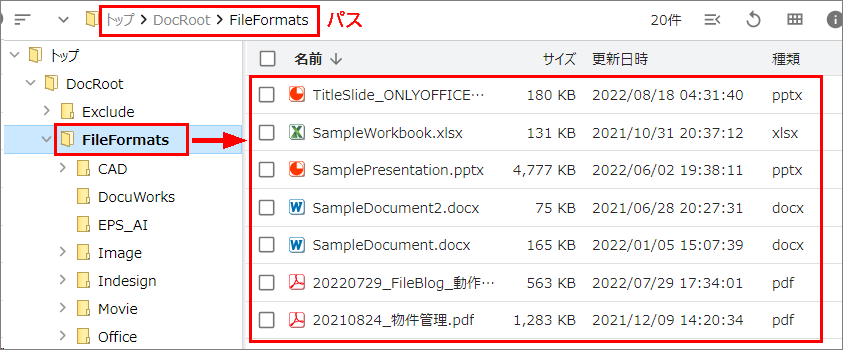 ページ上部にはカレントパス(現在位置)が表示されます。