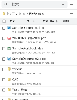 ファイルサーバーのフォルダ階層がそのまま表示され、フォルダをたどってファイルを一覧表示したり、ファイル内容をプレビューしたりすることができます。