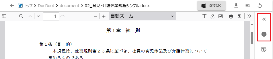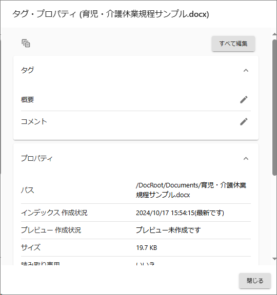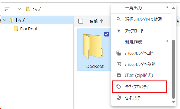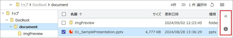 ファイル/フォルダを選択すると当該ファイル/フォルダのプロパティ情報が表示されます。