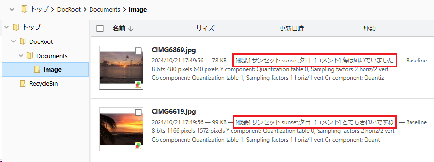 一般的な属性情報です。 ユーザーはFileBlogからはプロパティ情報を変更できません。 |